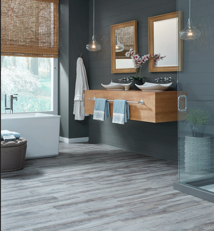 Waterproof vinyl planks can be used anywhere, but they’re especially ideal for rooms like kitchens, bathrooms, and basements. From accidental spills to pet messes, Mannington’s worry free vinyl plank options keep your flooring protected from moisture.